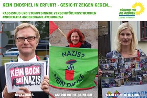 Anlässlich der für Samstag geplanten „Pegada/Endgame“-Demonstration in Erfurt rufen die Grünen-Abgeordneten Dirk Adams, Astrid Rothe-Beinlich und Madeleine Henfling zur Gegendemonstration auf und hoffen auf eine breite Beteiligung der Erfurterinnen und Erfurter.